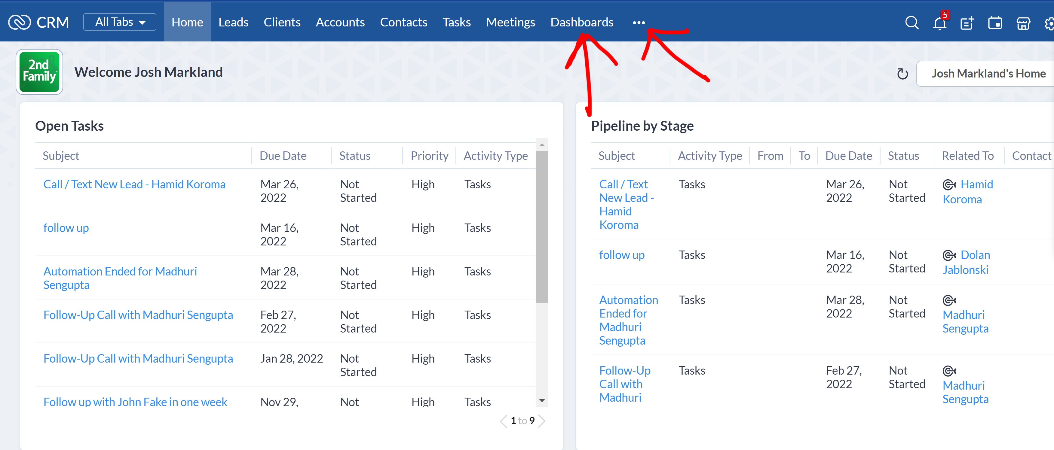 We have installed a new Business Development Dashboard in your Zoho CRM account. The metrics on this dashboard will coincide with the sales launch guide. To find the BDD, navigate to the modules menu at the top of the screen and select "Dashboards". If you do not see "Dashboards", click the ... symbol and "Dashboards" will appear in the dropdown menu. From there, you will have a list of Dashboards available to you on the left-side of the screen. One of the options will be named "Business Development Dashboard". If you click on that, you will see the newly-installed dashboard. Metrics from this dashboard will be discussed during any training / support calls, so please familiarize yourself with it.